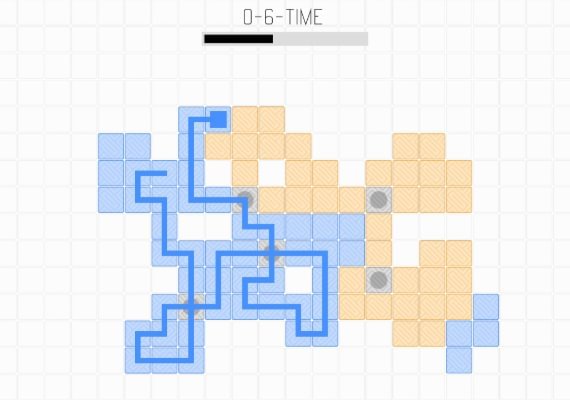 There are also special tiles. The "Teleport"-tile, teleports the line to another point in the puzzle. The "Double Use"-tile can be used twice, which is requires to solve some of the puzzles