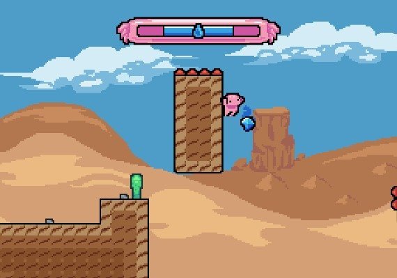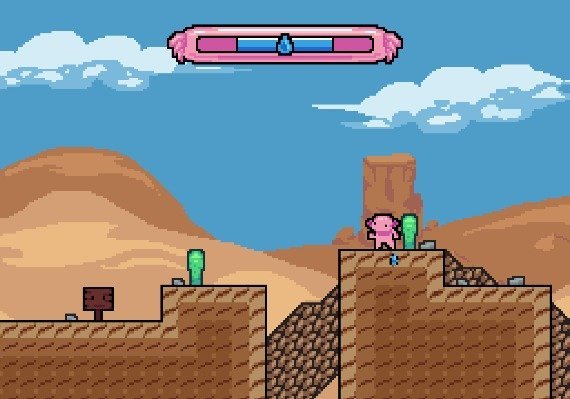 Jump into an adventure that will make you sweat, run, hop, and leap! In the precise platforming game, Axolotl is Dry, your goal is to lead a young Axolotl who was abducted by an eagle to a location far from his lake. Use interdimensional portals, springy palm trees, spiked walls, and more. You're gonna face several difficult obstacles on the trip home - use your range of skills, including jumps, sprints, wall slides, and more, to get around them. To reach your target, avoid spikes, leap in coconuts, and restore your dash from enchanted crystals - you must move quickly and continuously. Every second counts in the desert's intense heat. The little Axolotl requires water to avoid dehydration - you can recharge at an oasis at the end of each level before moving on to the next. Getting there is all up to you!