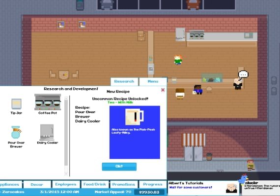 Stwórz własną kawiarnię i rozbuduj ją do rozmiarów franczyzy! Czy twoja marka będzie sprzedawać fantazyjną kawę po zawyżonych cenach w luksusowym sklepie, czy też będziesz oferować organiczne pączki z wolnego wybiegu otoczone wygodnymi meblami z drugiej ręki? Wszystko zależy od Ciebie! Dostosuj i zbuduj swoją markę i zabierz ją do wielkich lig!