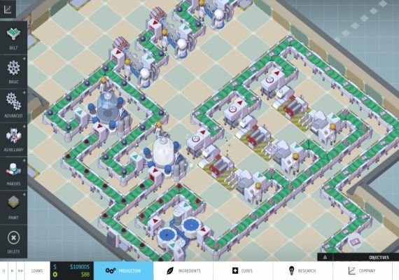 Like in any business, you start small with only a few old machines and recipes for mild illness. As you progress in the game and make more money, you’ll be able to afford new advanced technologies and research into more serious diseases. Try to manage your budget wisely. And do not make a miraculous medicine that will get rid of the disease completely. Remember that the less effective the medicine, the more money you can make. In this industry, illness is not so bad after all.