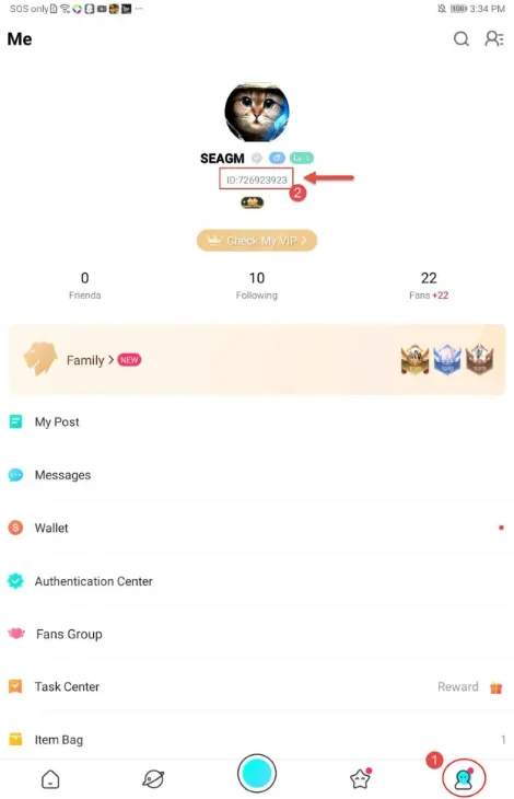 - Your BIGO ID is shown below your nickname.
