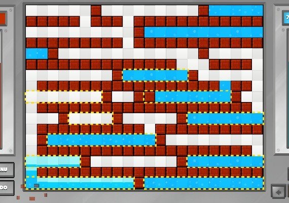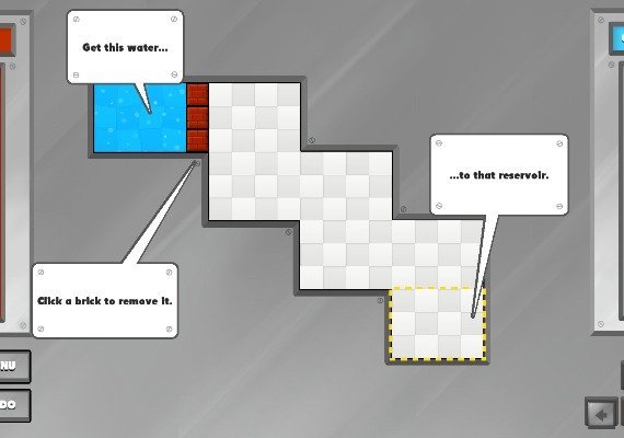 Build bricks, remove them, or change the direction of gravity to get the water to its destination. Some levels take a few minutes to solve, others might take hours! Try to fill all the reservoirs with 100% water in all of the 100 levels.