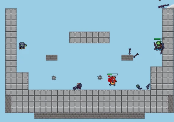 Bulletz is a fast-paced, chaotic 8-player shared-screen twin-stick shooter where explosive fun meets frantic action. Battle it out across destructible levels using randomly spawning guns, powerups, and items. Victory belongs to the first player to reach 10 kills!