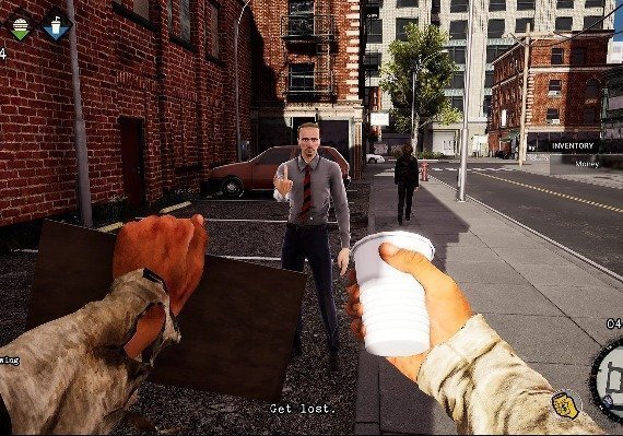 Dirty alleys, city streets, pawn shops, central park and rat infested sewers. You can go wherever you want and whenever you like. Enjoy the open, crazy, urban sandbox. There are many secrets to uncover and achievements to unlock. Each location houses interesting characters with personal story lines and quests. There's no place for boredom in bum's life!