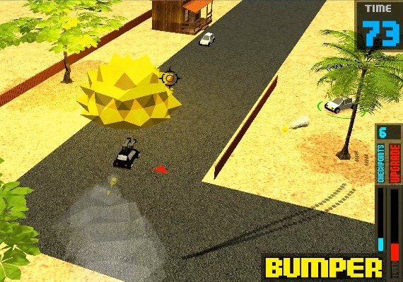 BUMPER is a casual game made on Blender Game Engine where the player must to destroy the vehicles as much as possible, trying not to get caught by the police, reach the checkpoints to get time and improve your weapons.