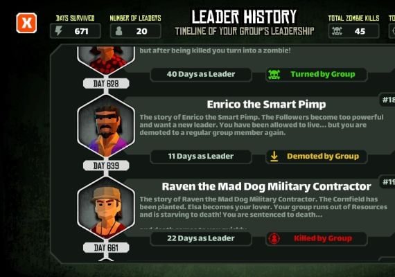Wische jeden Tag nach links oder rechts, um wichtige Entscheidungen für deine Gruppe zu treffen, während du um das Gleichgewicht zwischen rivalisierenden Fraktionen und begrenzten Ressourcen kämpfst. Jede Entscheidung ist wichtig und kann den Unterschied ausmachen, ob du die Apokalypse überlebst oder Teil der Zombiehorde wirst.