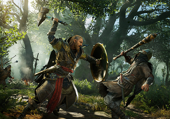 Además de barbas, tatuajes y miradas furiosas, el juego también cuenta con otros elementos inspirados en los vikingos, como las armas. El arsenal habitual de Assassin se ha ampliado y ahora incluye nuevas armas, como mayales y grandes espadas. También puedes equipar uno de los poderosos escudos nórdicos, ya que ahora es posible llevar dos armas.