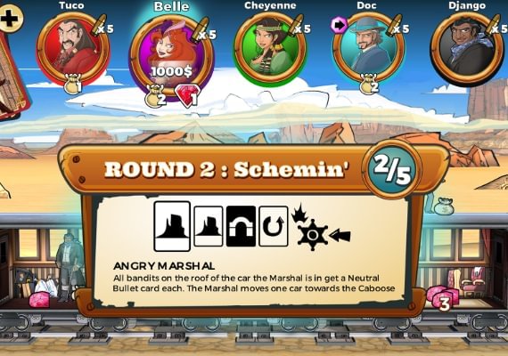 El juego transpuesto oficialmente de Colt Express, el famoso juego de mesa de atracos a trenes. Traza tu plan paso a paso y sumérgete en la acción para saquear los vagones. Pero cuidado, no eres el único Hombre Más Buscado con intención de hacerse rico hoy: puede que tengas que replantearte tu estrategia...
