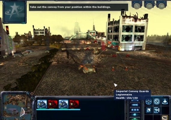 Having lost the war in space, the NSA retreats to their home world and forces the Terran Empire to engage in a savage war of attrition on the ground. At your disposal are huge combat dropships, battle-hardened infantry, armoured vehicles, powerful tanks and an assortment of air units.
