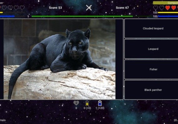 Das "I've Seen Everything"-Quiz ist ein Spiel für alle, die ihre Gelehrsamkeit, ihr logisches Denken, ihr Gedächtnis und ihre Aufmerksamkeit testen wollen. Das Spiel ist unterhaltsam und lehrreich zugleich. Das Quiz enthält viele interessante Bilder und Fakten. Durch die Verwendung von Hinweisen und Anti-Hinweisen können Sie Ihre eigene Spielstrategie entwickeln: Verwenden Sie Hinweise, um richtige Antworten zu geben, oder verwenden Sie mehr Anti-Hinweise, um Ihrem Gegner das Spiel zu erschweren. Sie müssen erkennen, was Sie auf dem Bild sehen (eine berühmte Person, eine Flagge, eine Frucht, ein Tier, ein Mineral usw.) und eine von vier möglichen Antworten wählen. Du wirst erleben, wie ein Kadett einer Ethnie humanoider Außerirdischer die Erde studiert, um sich auf die Prüfung für die Beförderung zum Berater in einem Regiment von Weltrauminvasoren vorzubereiten.