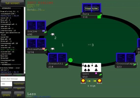 Superglattes und flüssiges Spielerlebnis ohne Störungen, so dass Sie viele Hände pro Stunde spielen können. Wählen Sie Ihren individuellen Chipwert - Blinds und Ante. Behalten Sie den Überblick über den Spielstand, die Buy-Ins und den aktuellen Stack eines jeden Spielers! Alles wird auch in die Logdatei geschrieben.