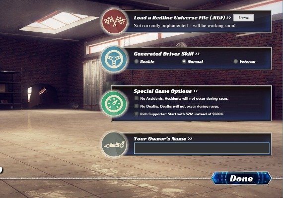¿Alguna vez has soñado con tener y gestionar tu propio equipo de carreras de coches? Redline Ultimate Racing te permite hacer realidad tus sueños. Toma el control de un universo de carreras generado aleatoriamente (completo con coches, patrocinadores, circuitos/calendario, pilotos y jefes de equipo) o carga tu propio universo creado a medida en el juego.