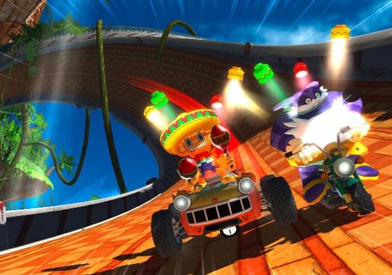 Explore stunning new circuits including Sonic Seaside Hill, Curien Mansion and Blizzard Castle as you zip around medieval castle ramparts, hurtle under lush rain forest canopies and tear through bustling city scapes in a frantic race to the finish line. Jostle against a selection of 20 challengers including Super Monkey Ball’s Ai Ai, Amigo from Samba and the evil Dr. Eggman in your unique character vehicle. Stay ahead of the pack by dodging traps and launching outrageous character moves such as the invincible Super Sonic, Banana Blitz assault of monkey balls or Tails wild Tornado - set to throw any vehicle clean in the air! But if you’ve been battered, beaten and broken, it’s not over yet! Super-charge your vehicle with power-ups to get back in the race and be sure to stay alert for the secret short-cuts that will give you the edge to victory.