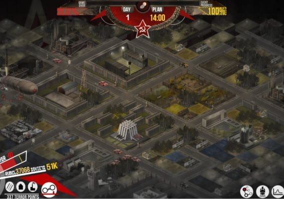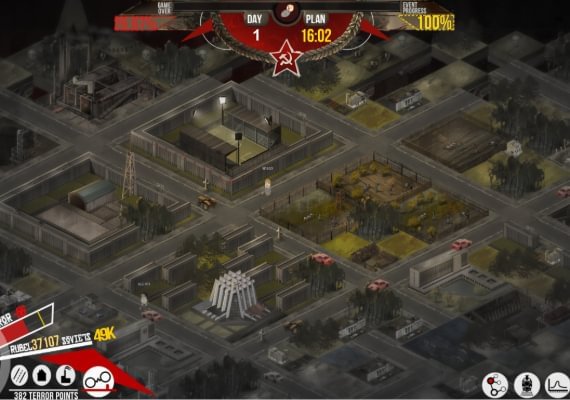 • Some of the buildings can increase or decrease level of terror. Terror determines the effectiveness of all buildings and soviets. Apart from that, it is also the main threat to your regime