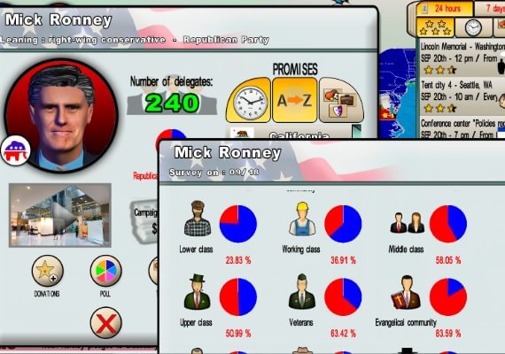 Spielen Sie als realer Kandidat und tauchen Sie vollständig in den Kampf der US-Präsidentschaftswahlen ein