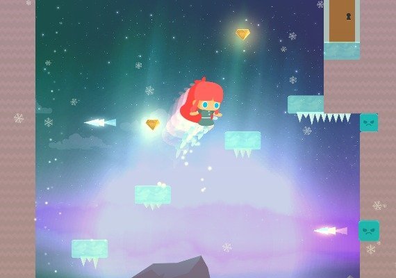 - PLATFORMING... AUF EIS: Die gefrorenen Landschaften, die du durchquerst, lassen dich direkt in die Gefahrenzone rutschen, wenn du nicht aufpasst. Achte auf deine Geschwindigkeit und deinen Schwung, besonders bei Windströmungen!