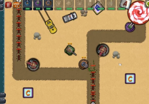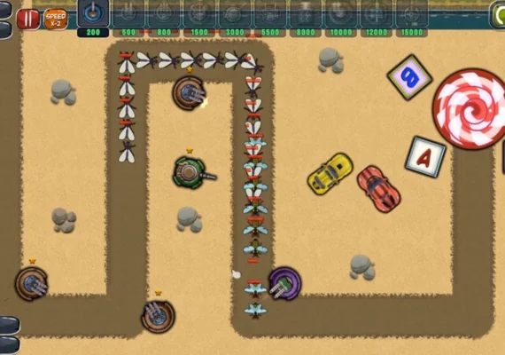 The goal is deceptively simple: defend the candy. But the game wastes no time ramping up the pressure. Each wave brings more insects, tougher enemies, and smarter behavior. You'll need to: