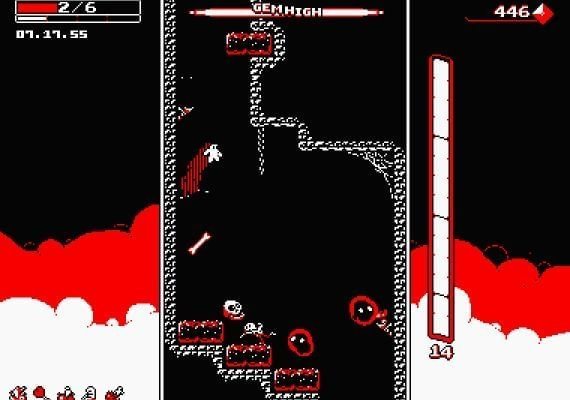 Downwell to ciekawa gra o młodym człowieku, który zapuszcza się w głąb studni w poszukiwaniu niezliczonych skarbów, mając do ochrony jedynie swoje buty. Przedzieraj się coraz głębiej w ciemność wypełnioną paskudnymi stworzeniami i tajemniczymi sekretami, aby zebrać spektakularne czerwone klejnoty rozrzucone po skałach. Wejdź do niepewnie rozmieszczonych sklepów i kup przydatne przedmioty lub awansuj między poziomami, aby walczyć z zamieszkującymi studnię potworami i odkrywać ukryte jaskinie wypełnione bogactwami i reliktami. Żadna podróż w dół studni nie jest taka sama!
