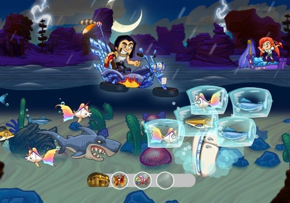 Join the fun in this wild fishing action and rush across the seven seas. Fly fishing is boring! Grab your guns and explosives and let’s catch some fish REDNECK STYLE! Forget about idyllic ponds, or beautiful coral reefs. Dynamite Fishing – World Games will ship you to the best fishing spots all over the globe including an awesome jungle adventure! Choose your favorite characters and boats, explore the most daring scenarios and catch as many fish as you can.
