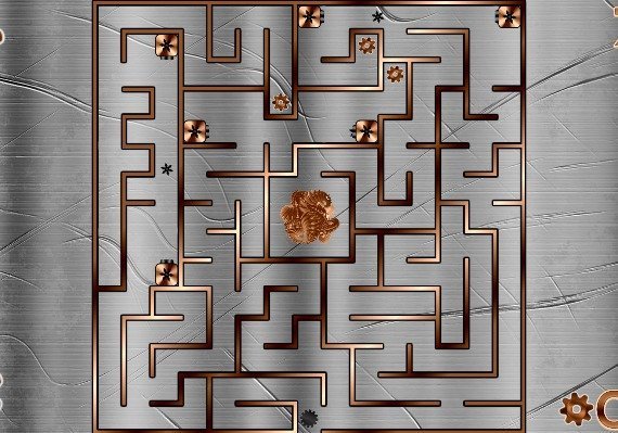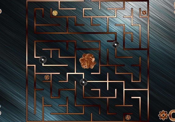 En este juego necesitas pasar un pequeño engranaje a través del laberinto. Hay que llevarlo a un portal, que suele estar en el centro del laberinto, pero antes hay que activarlo.