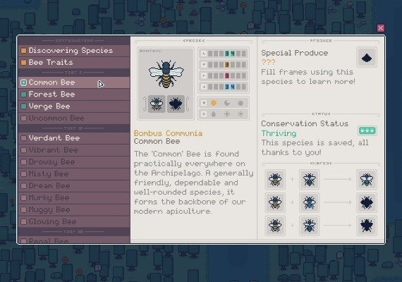 • Multiple biomes to explore, each with their own unique bee species