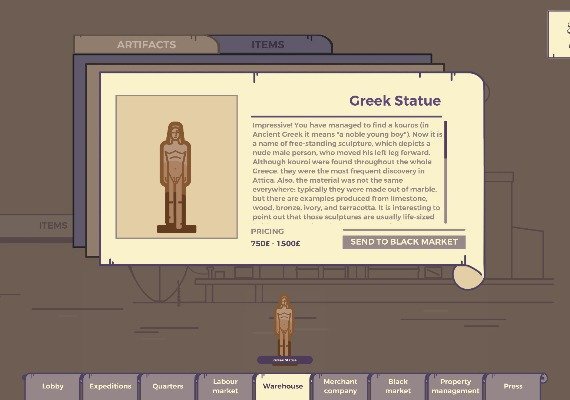 Archeo: Shinar is an economic turn-based strategy set in the world of archeology. It blends the preparation period (turn-based strategy) with expeditions (real-time strategy) in unique gameplay mixup with a lot of small stories and grotesque humor.