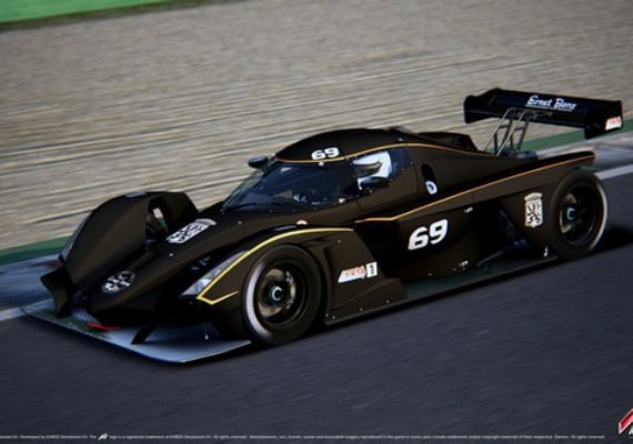 This model is a full-carbon track car designed around a composite monocoque, inspired by endurance prototypes.