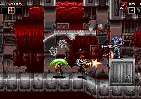In Blazing Chrome, machines rule the world and the few humans left are on the edge of total extermination, lacking power, prestige or status among their metal and circuits overlords. Bring your best pal and kick some metal butts to free the humankind while enjoying a classic run’n’gun, fully loaded with action and exciting fights!