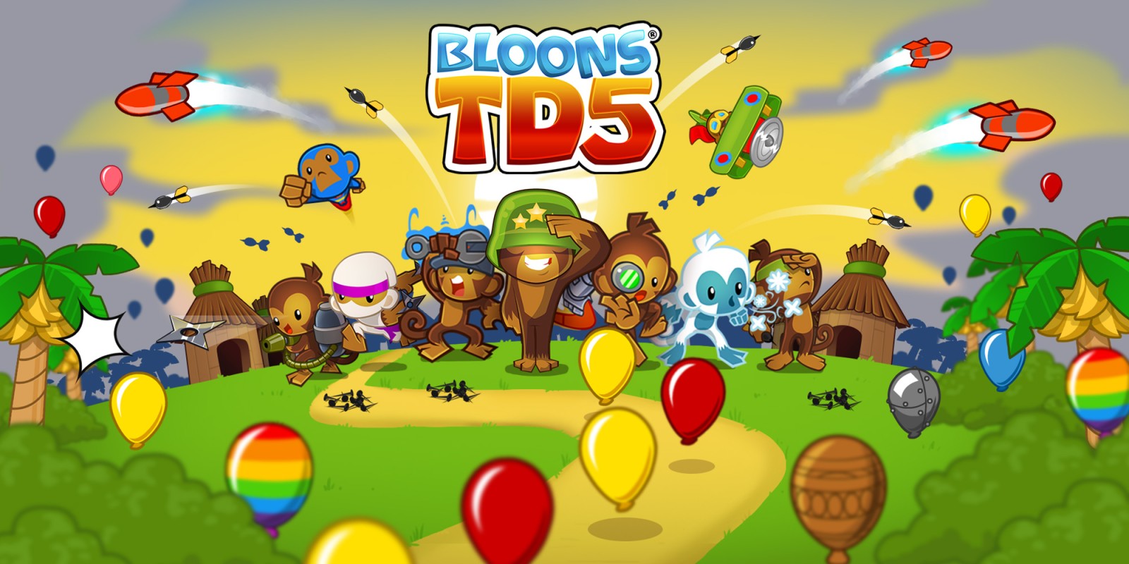 Featuring an all New Tower and Special Agent, glorious HD graphics, original Tracks and Special Missions, a whole new tier of Specialty Building upgrades, and a never-before-seen Monkey Lab to upgrade your towers, Bloons TD 5 delivers hours of fun and challenging play to fans and new players alike.