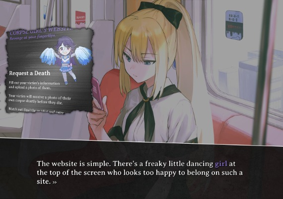 Rumors and whispers are sweeping the city like wildfire. More than a few people—people willing to take enormous risks in order to indulge their deepest desires—have begun to become intrigued by rumors about a peculiar website. On the website of Corpse Girl, people are allegedly able to seek the demise of someone they know. All that is necessary is a picture of the potential victim. The company guarantees that after an image is submitted, the victim's soul will be extinguished within a few days.