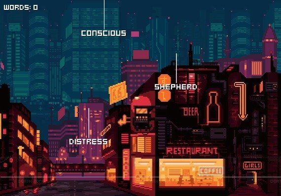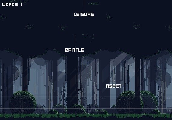 Tu tarea consiste en imprimir las palabras que caen lo más rápido posible sin dejar que caigan por debajo de la zona de peligro.