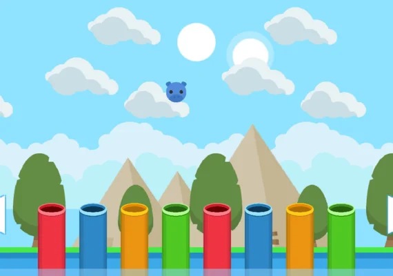 Catch animals that jump out matching the color of each pipe