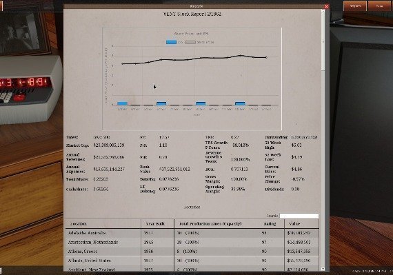 Design the cars and choose whether you want to use cheap parts to lower prices or create more expensive vehicles. Manage production lines and budget, hire employees, and distribute supplies. Keep updated with the latest selling rates and your cars’ reviews by reading the newspaper, which also provides you with news from the world that may influence your business. Don’t forget about the marketing aspect of owning a company. Fund racing drivers to advertise your make.