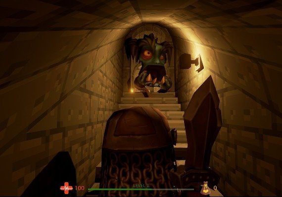 Jump into procedurally generated dungeons and fight the creatures who stole your gold. Kill them to gain experience and grab your gold. Craft over 20 swords with different attributes to fight the growing threat. The higher your experience is, the more gold the creatures will drop. Get to the end of the dungeon to bring your gold to your vault. If you die, your experience is lost as well as the currently collected gold.