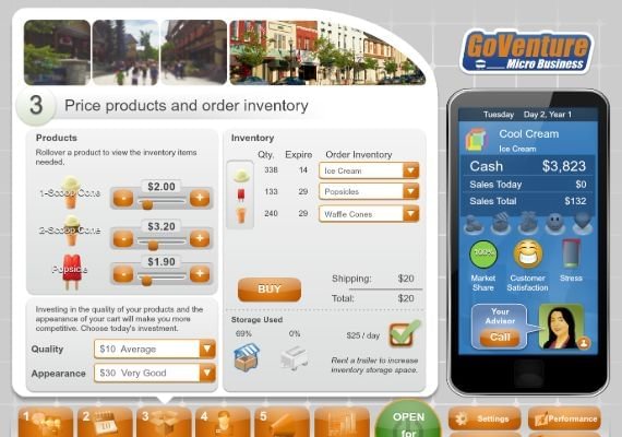¿Quieres ser el próximo magnate de los negocios, director general de una empresa o emprendedor social? Pues todo empieza aquí. GoVenture Micro Business te pone en el papel del propietario de un carro de negocios móvil, donde debes decidir qué productos vender y dónde y cuándo venderlos para maximizar los beneficios y mantener contentos a tus clientes. Experimenta todo lo que necesitas saber sobre los aspectos básicos de la puesta en marcha y gestión de un negocio. Este es tu primer paso para ser tu propio jefe.