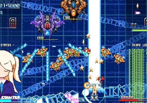 Un juego de disparos en 2D de desplazamiento de arriba abajo en el que cargas tu medidor acercándote peligrosamente al fuego enemigo, ¡y luego lo desatas como un poderoso "Contador de impactos" que destruye a tus enemigos!