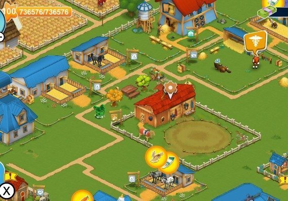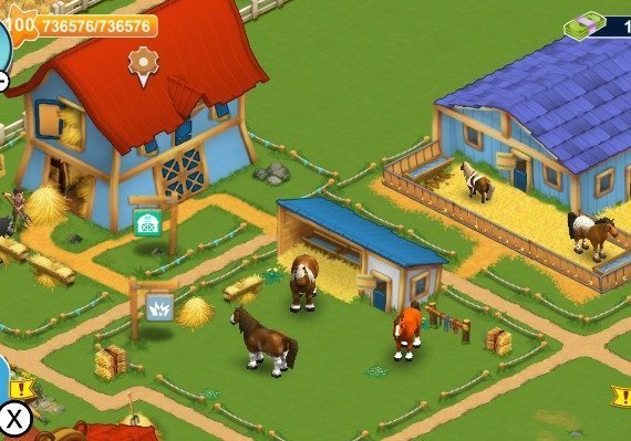 Horse Farm te ofrece un escenario de juego único con innumerables oportunidades para personalizar tu experiencia de juego. Explora el rico y bellamente diseñado mundo de los juegos de caballos, mientras construyes tu propia academia de equitación. Empezarás construyendo tu primer establo y comprando tu primer caballo. Pero pronto estarás haciendo mucho más, atrayendo huéspedes a tu rancho de caballos ofreciéndoles cómodos alojamientos, deliciosa comida y ganando dinero con el día a día de tus establos.