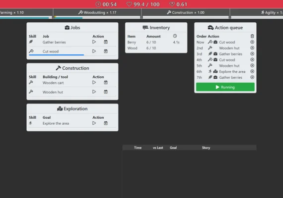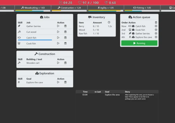 Increlution stands apart from typical idle games by introducing a unique cycle of life and death. As your character's health inevitably declines faster over time, you'll need to utilize every tool at your disposal – from basic food gathering to complex constructions. While death is certain, each generation benefits from the accumulated instinct levels of previous lives, creating a compelling meta progression system that keeps you coming back for more.