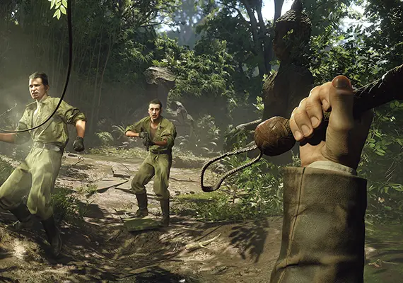• Utilize Indiana Jones' trademark whip for navigation and combat