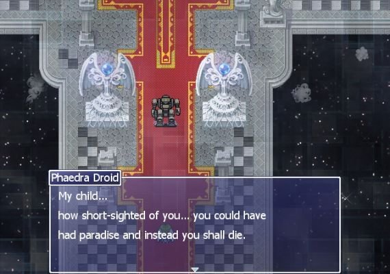 Este juego ha sido desarrollado para los amantes de los RPG retro clásicos, alguien que está esperando sentarse con un atractivo elenco de personajes, subirlos de nivel y dejar que la historia se desarrolle mientras llevan a los héroes a la victoria, el romance y la verdad, ¡para finalmente salvar al mundo de la destrucción a manos de un Dios Máquina!