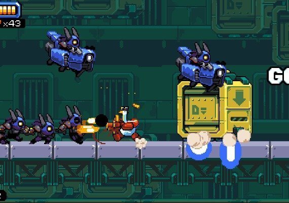 At the core Mighty Goose is a tight side-scrolling run & gun shooter that will test your skill, timing, reflexes. Building upon that solid arcade base, the game adds a ton of crazy weapons, warmachines, upgrades and secrets.