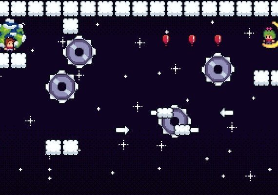 Maitê is a very intelligent girl, but she lives over the moon. This is why her dad has to go there and bring her back to Earth in this 50 stages long incredible adventure. Jump over clouds, balloons, trampolines and into special portals in order to get to the ending of this pixel art made beautiful game.
