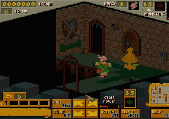 El Barón Baldric puede saltar, empujar, tirar, accionar interruptores, abrir puertas, subir escaleras y sucumbir al veneno. También tiene un mapa y varios hechizos de armas, incluidas bolas de fuego y veneno.