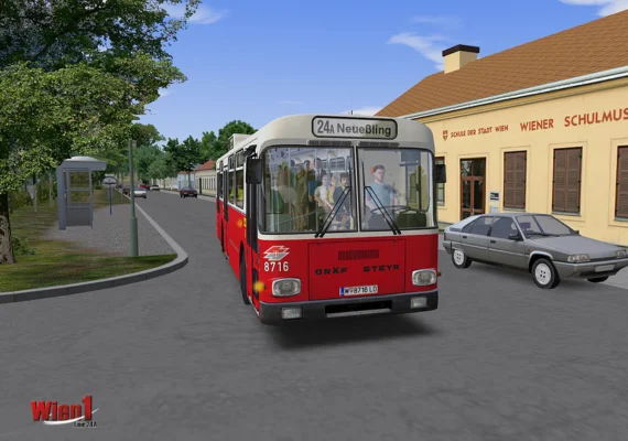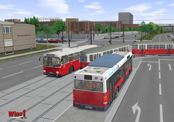 “Wien 1 – Line 24A” is the first of two add-ons for OMSI 2 placed in Vienna. It includes the route of Line 24A in different variants and traffic routings as well as the appropriate articulated busses of high-floor and low-floor generations.