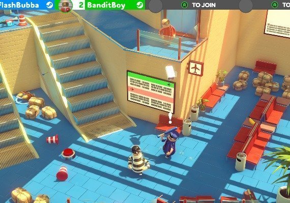 Although you can play Rubber Bandits in a single-player Arcade mode, the game fully thrives in an online multiplayer. You can also invite friends and play from one PC, or join other bandits in local co-op gameplay. Start a chaotic fight for treasure against other criminals in the Brawl mode, or create a burglar dream team and execute the perfect robbery in Heist mode.