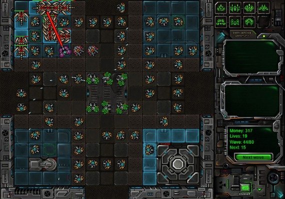 Shuttle Siege is a sci-fi Tower Defense game in which you defend your space shuttle from the invasion of metallic creatures. It distinguishes itself from classic Tower Defenses in that you can design a path for the invaders using your buildings, an aspect that very few games have (including Desktop Tower Defense and Fieldrunners). Challenging maps, powerful towers, and various types of enemies are going to give you a fun, fresh experience.