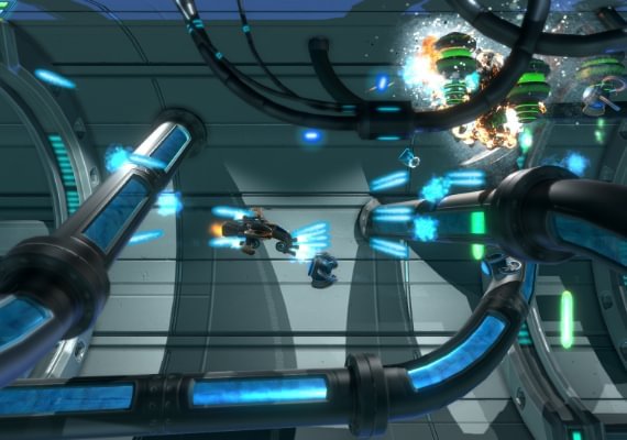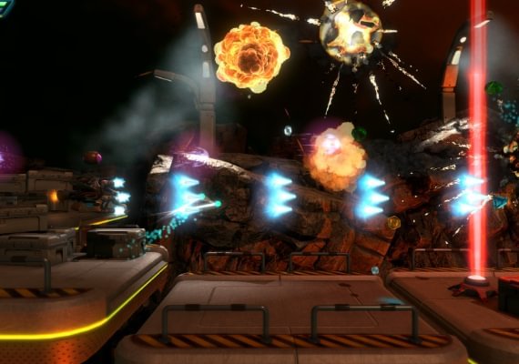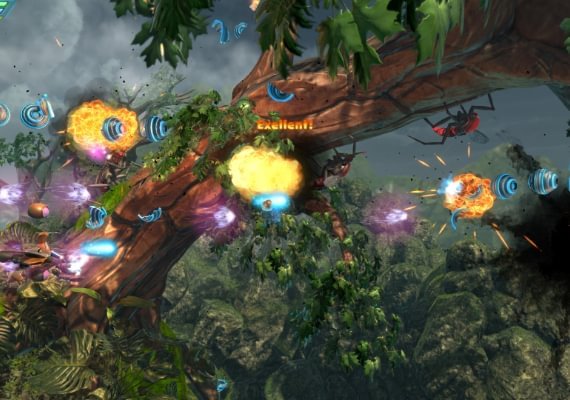 Mientras recorres los niveles viendo las atracciones locales y aplastando a tus enemigos, ganarás puntos y créditos. Puedes gastar los créditos en mejorar las armas y la nave en la tienda que hay entre los niveles.