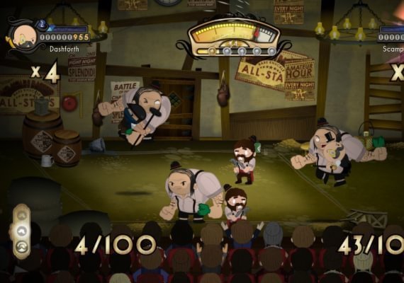 Play as the daemon-hunter Baron Dashforth in a side-scrolling co-op brawler set entirely on the grand spectacle of a theatre stage that rewards performance over pummeling. Perform shattering takedowns and reversals! Electrify the audience with devastating linked attacks as you have a friend join as sidekick Scampwick and use every stage-trick you know to bring the house down! Play out the most spectacular moments of the Baron’s life; improbable beasts, astonishing villainy and, at the heart of it all, the mysterious Foul Play!