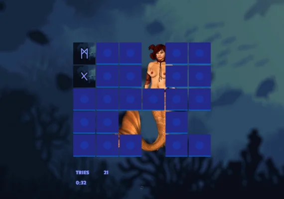 - Memory Matching: Flip two cards to match Viking symbols, removing them to reveal one of 12 adult-themed mermaid images per level.