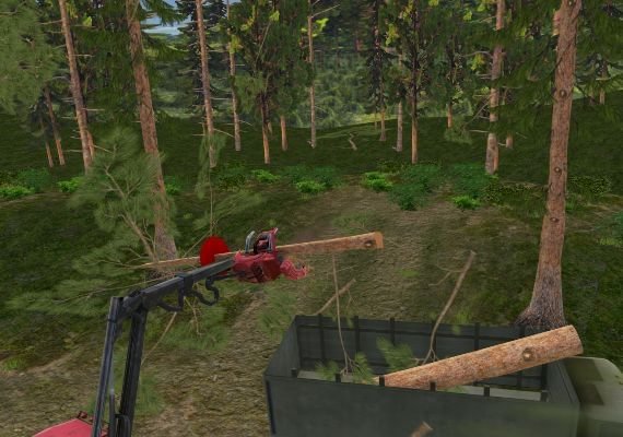 Use claw to grab tree trunks and bend them with the help of the saw. Do as many wood products as possible. But be extremely accurate, using claw and saw. Don't spoil the timber.